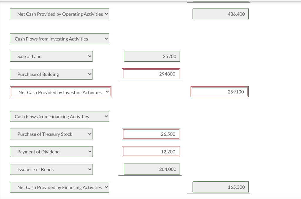Units Per unit price Total. Prepare an income statement for Wildhorse Co. 54000 Beginning cash balance Accounts payable decrease 4440 Depreciation expense 194400 Accounts receivable increase 9840 Inventory increase 13200 Net income 340920 42000 14400 Cash received for sale of land at book value Cash dividends.